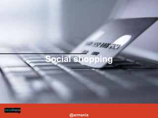 Le document traite du social shopping et des fonctionnalités des boutiques en ligne sur Facebook, notamment les crédits et les deals à partir de juillet 2011 pour les développeurs de social gaming. Il présente également des outils pour créer des campagnes promotionnelles via Facebook. Des informations de contact et des liens vers des ressources supplémentaires sont fournis.