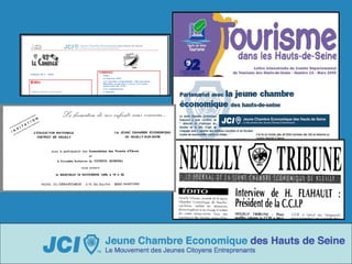 La soirée de gala rend hommage à l'histoire de la JCE Hauts-de-Seine et présente les réalisations de divers présidents de 1981 à 2005, incluant des initiatives telles que le forum des associations et le jumelage avec Omah en Irlande. Des projets notables comme 'Imaginair' et 'De la terre à la lune' sont également mentionnés, soulignant l'impact de l'organisation sur la communauté. L'événement est soutenu par la mairie de Neuilly-sur-Seine.