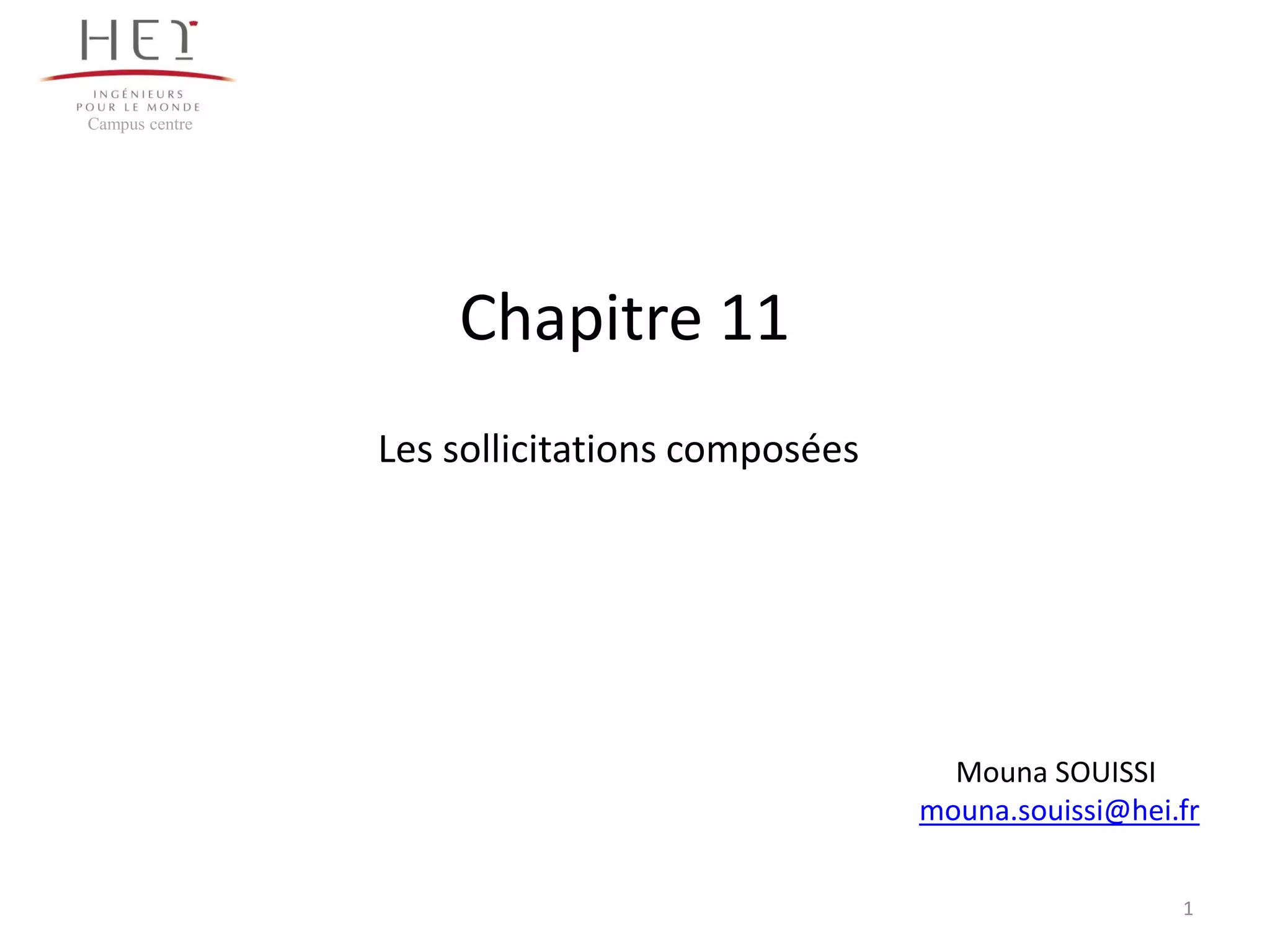 Le document traite des sollicitations composées des poutres, qui ne peuvent pas être analysées à l'aide de sollicitations élémentaires. Il présente la superposition de diverses sollicitations comme la torsion, le cisaillement, la traction et la flexion, en démontrant leur impact sur les contraintes des poutres. Plusieurs critères de résistance, tels que ceux de Tresca et de von Mises, sont aussi abordés pour évaluer les conditions d'endommagement des matériaux.