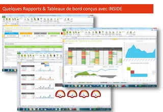 Le document présente une solution de reporting d'entreprise incluant des tableaux de bord financiers interactifs permettant d'analyser données réelles et budgétaires. Il propose des outils graphiques personnalisables pour visualiser des indicateurs clés en temps réel. Des exemples spécifiques de tableaux de bord pour divers secteurs sont également mentionnés.