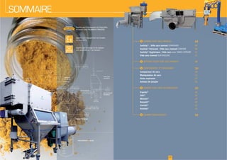 Le document présente des solutions de déconditionnement, compactage et manipulation de sacs pour divers types de produits, y compris des équipements spécifiques et leurs caractéristiques. Il détailles les différentes options et modèles disponibles, ainsi que leurs fonctionnalités adaptées aux normes de sécurité et d'hygiène. Des informations sur les performances, les designs sur mesure et les applications industrielles sont également incluses.