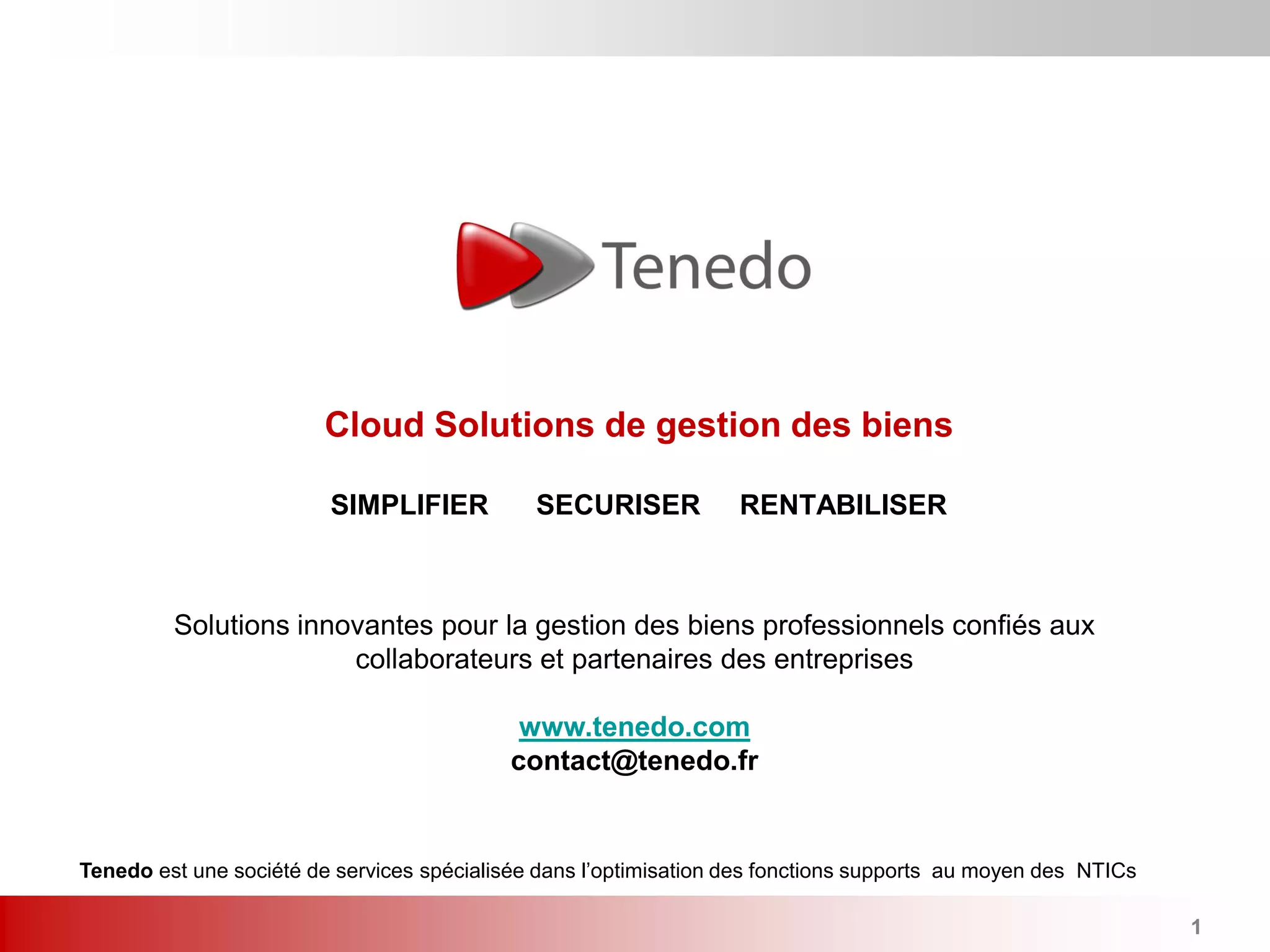 Tenedo est une entreprise spécialisée dans l'édition de solutions SaaS pour la gestion des biens professionnels, visant à optimiser les processus et réduire les coûts pour les PME et grandes entreprises. Elle propose divers outils, y compris un inventaire déclaratif et des modules de reporting, afin de résoudre les défis liés à la gestion des biens et de favoriser une approche plus stratégique et cohérente. Les solutions de Tenedo ont déjà été testées par plus de 10 000 collaborateurs, démontrant leur efficacité dans la rationalisation des opérations.