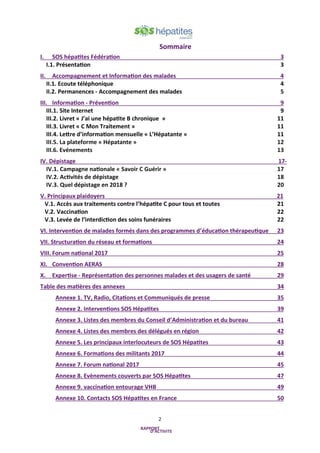 Le rapport d'activité de SOS Hépatites en 2017 met en lumière les actions de soutien, d'information et de prévention destinées aux personnes atteintes d'hépatites, à travers des lignes d'écoute, des permanences et des groupes de parole. L'association a renforcé son réseau de soutien en région et a développé des initiatives autour du dépistage et des traitements, tout en formant des bénévoles pour améliorer l'accompagnement des malades. SOS Hépatites plaide également pour un meilleur accès aux soins et une reconnaissance des droits des patients dans le domaine de la santé.