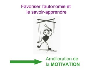 Le document explore des stratégies pour améliorer la motivation des apprenants, en mettant l'accent sur des approches telles que l'autonomie et le savoir-apprendre. Il définit la motivation en termes extrinsèques et intrinsèques tout en proposant des méthodes pratiques pour la renforcer. Des obstacles à l'atteinte de cette motivation et des réflexions sur l'enseignement des langues sont également abordés.