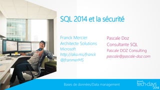 Le document traite de la sécurité dans SQL 2014, abordant la séparation des rôles, l'utilisation de certificats, et de l'audit pour protéger les bases de données. Il met en évidence des pratiques sécuritaires comme le changement régulier de mots de passe et la restriction des accès par des rôles applicatifs. Le contenu inclut également des anecdotes et des conseils pour améliorer la gestion des droits d'administration.