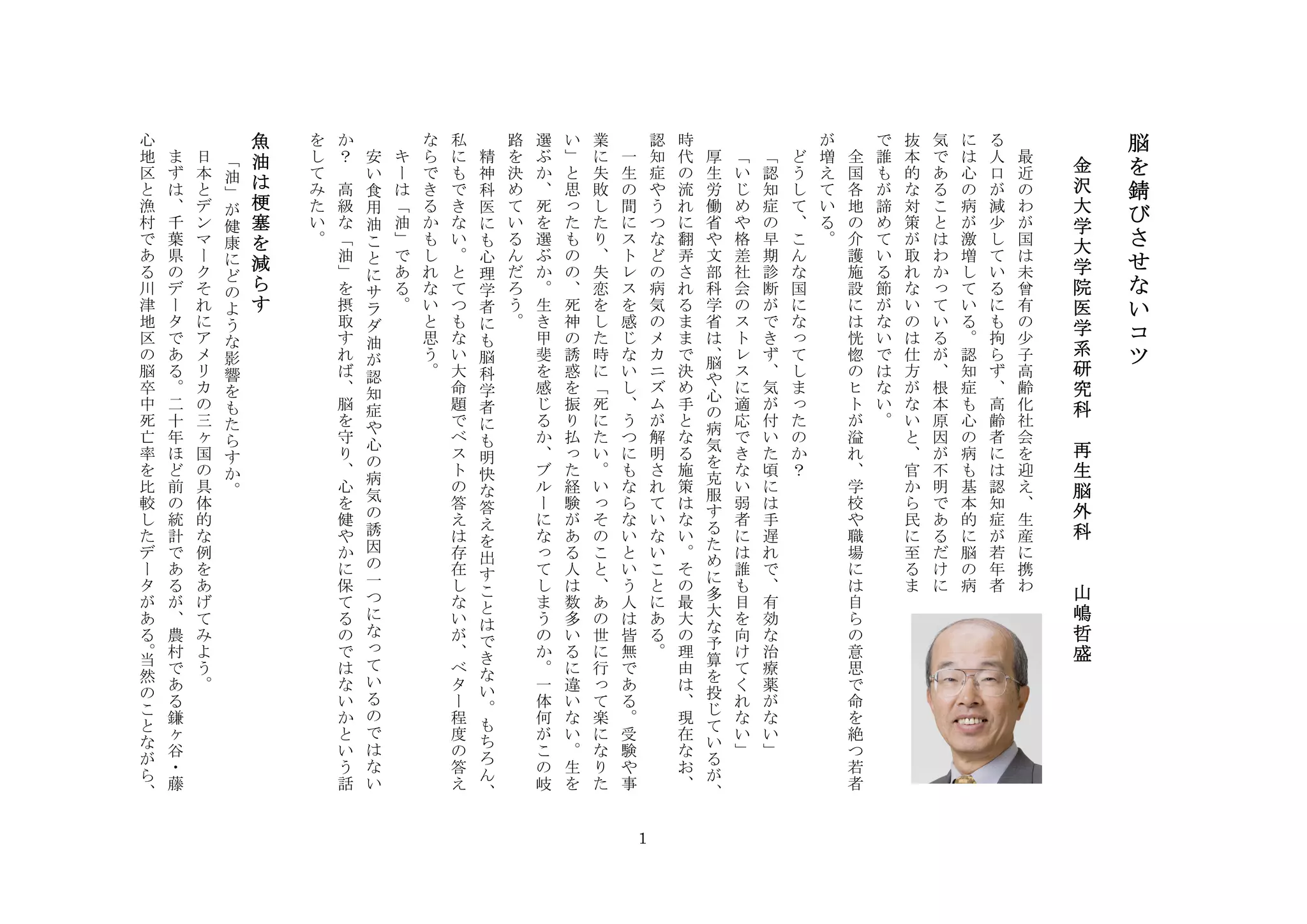 2012902「サラダ油が脳を殺す」出版記念 脳トレ講演会