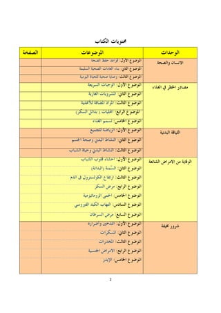 Le document aborde divers aspects de la santé physique, mentale et psychologique, ainsi que des recommandations nutritionnelles, notamment l'importance de la pyramide alimentaire. Il mentionne également des maladies courantes et des facteurs de risque liés à l'alimentation, à l'obésité et à d'autres conditions. En outre, des informations sont présentées sur les habitudes de vie et leur impact sur la santé globale.