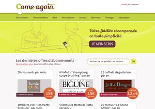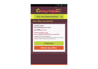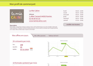 Le document décrit un événement Startup Weekend organisé à Nantes en 2013, mettant en avant un service d'abonnement personnalisé pour les commerçants comme solution marketing. Le modèle économique repose sur une commission de 2% sur les abonnements et des abonnements mensuels pour des outils d'analyse. Les canaux de distribution incluent les banques et les franchises, et le concept a été bien accueilli par les clients et consommateurs.