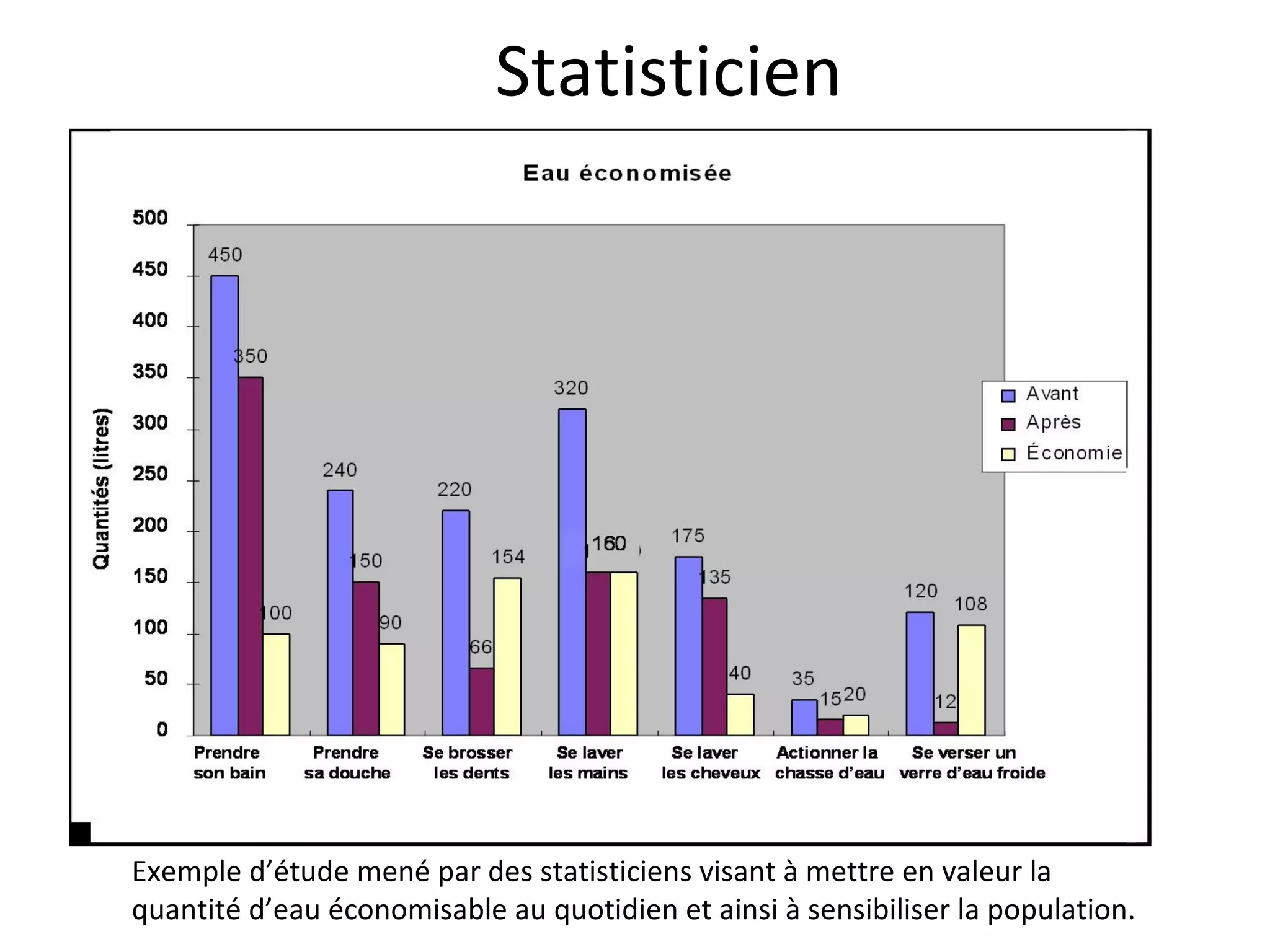 Le document présente le rôle des statisticiens, qui sont chargés de recueillir et d'analyser des données pour éclairer les décisions dans divers domaines comme l'industrie, l'économie et la santé. Il décrit également les formations nécessaires pour devenir statisticien et fournit des informations sur les salaires allant de 2300€ à 3100€ brut par mois pour les débutants. Les statisticiens jouent un rôle clé dans la modélisation des situations complexes et la communication des résultats à des fins décisionnelles.