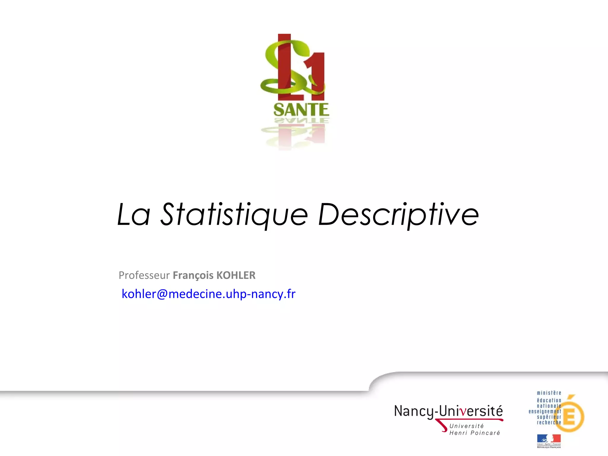 Le document aborde les méthodes de statistique descriptive, visant à présenter les données de manière claire et concise, en se concentrant sur les distributions de fréquences pour différents types de données (qualitatives, quantitatives, ordinales). Il explique les concepts de distributions groupées et non groupées, ainsi que les graphiques appropriés pour visualiser ces distributions. De plus, il couvre les paramètres statistiques tels que la moyenne, la médiane et d'autres mesures de position et de dispersion.