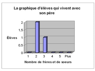 Le document présente une étude sur les statistiques familiales réalisée par un groupe d'étudiants, se concentrant sur les élèves vivant avec leurs parents, mère, père et d'autres personnes. Les présentateurs expliquent les résultats à l'aide de graphiques et de pourcentages. Ils remercient également l'auditoire pour son attention.