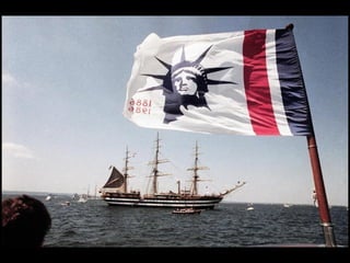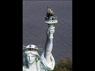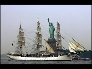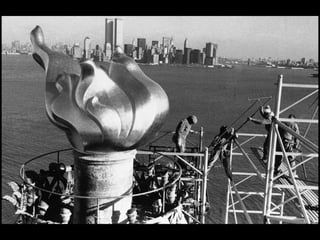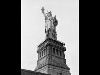 La Statue de la Liberté, conçue par le sculpteur français Bartholdi avec l'aide de Gustave Eiffel, a été offerte par la France aux États-Unis pour célébrer leur indépendance en 1886. Cette monumentale œuvre, symbole de liberté et de démocratie, a accueilli des millions d'immigrants à New York et a été saluée comme une réalisation technique majeure du 19e siècle. Des événements au fil des ans, tels que des discours commémoratifs et des rénovations, ont souligné son importance culturelle et historique.
