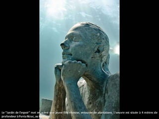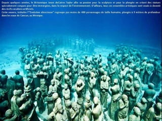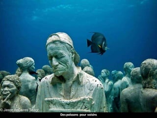 Jason deCaires Taylor est un artiste qui crée des statues sous-marines, transformant des fonds marins en galeries d'art. Son travail unique, qui allie art et environnement, attire l'attention et offre une expérience visuelle fascinante. Vous pouvez explorer ses œuvres et voir d'autres photos sur son site internet.