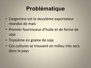 Une équipe de chercheurs en Argentine a découvert un gène de tournesol, le gène hahb-4, qui résiste à la sécheresse, permettant d'augmenter les rendements de cultures comme le blé, le maïs et le soja jusqu'au double. Ce gène a été intégré dans des semences de soja, réduisant les besoins en eau à 500 mm par an. Cependant, cela soulève des inquiétudes quant à l'accélération de la monoculture, risquant de nuire à la rentabilité à long terme.