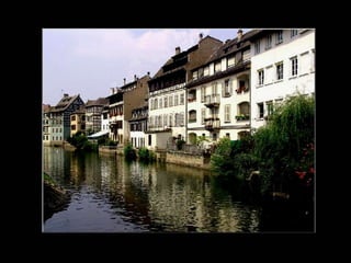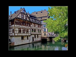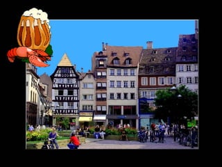 Le document présente Strasbourg comme une ville riche en histoire et en patrimoine, avec son centre classé au patrimoine mondial de l'humanité. La ville, qui mêle influences françaises et allemandes, est réputée pour son architecture typique, sa gastronomie variée et son rôle économique en Alsace. Strasbourg est également le berceau de l'imprimerie, ayant été le lieu de naissance de Gutenberg et de l'imprimerie à caractères mobiles.