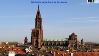 Le document présente des sites historiques et culturels de Strasbourg, notamment la cathédrale Notre-Dame et plusieurs places et bâtiments emblématiques du quartier de la Petite France. Il mentionne également des institutions telles que la bibliothèque nationale et l'opéra de Strasbourg. Enfin, il incite à visiter un site web pour plus d'informations.