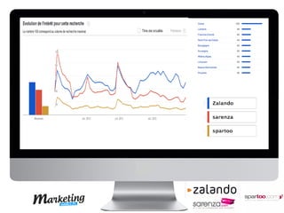 Le document analyse les stratégies de référencement de trois acteurs majeurs de la vente en ligne de chaussures : Zalando, Sarenza et Spartoo. Il évalue leurs performances en SEO et SEA, ainsi que leur positionnement sur Google pour plusieurs requêtes liées aux chaussures. L'analyse inclut également des données sur leur présence et interactions sur les réseaux sociaux.