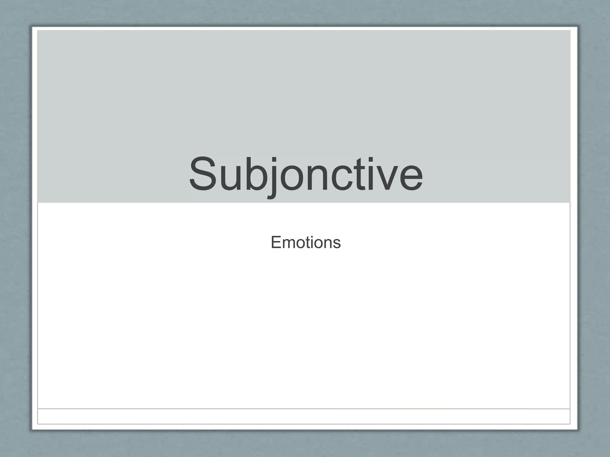 Le document traite des émotions exprimées au subjonctif en français, avec des exemples de verbes tels que 'croire' et 'craindre'. Il couvre diverses émotions comme la joie, la tristesse et la colère, et propose des exercices pour pratiquer l'utilisation du subjonctif avec un ou deux sujets. Les exemples illustrent comment exprimer des sentiments dans différentes situations.