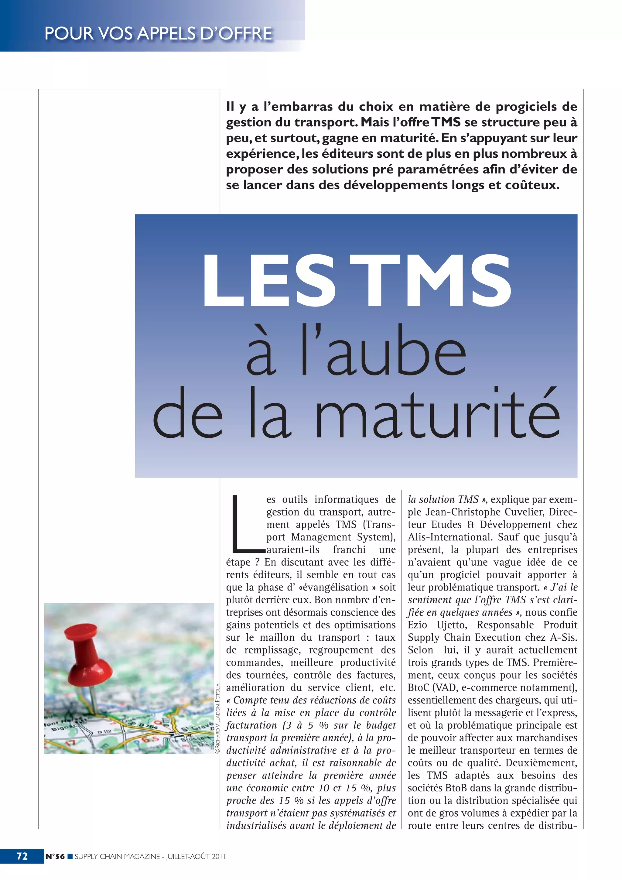 Les systèmes de gestion du transport (TMS) se mature avec de plus en plus d'éditeurs proposant des solutions pré-paramétrées pour réduire les coûts et le temps de mise en œuvre. Bien que la demande pour ces outils augmente, beaucoup d'entreprises n'ont qu'une idée floue de leur utilité, nécessitant un travail d'évangélisation et de clarification de l'offre. Le mode SaaS émerge également, offrant un accès facilité et une flexibilité de coûts, tout en soulevant des questions sur la personnalisation et la nécessité d'une analyse préalable.