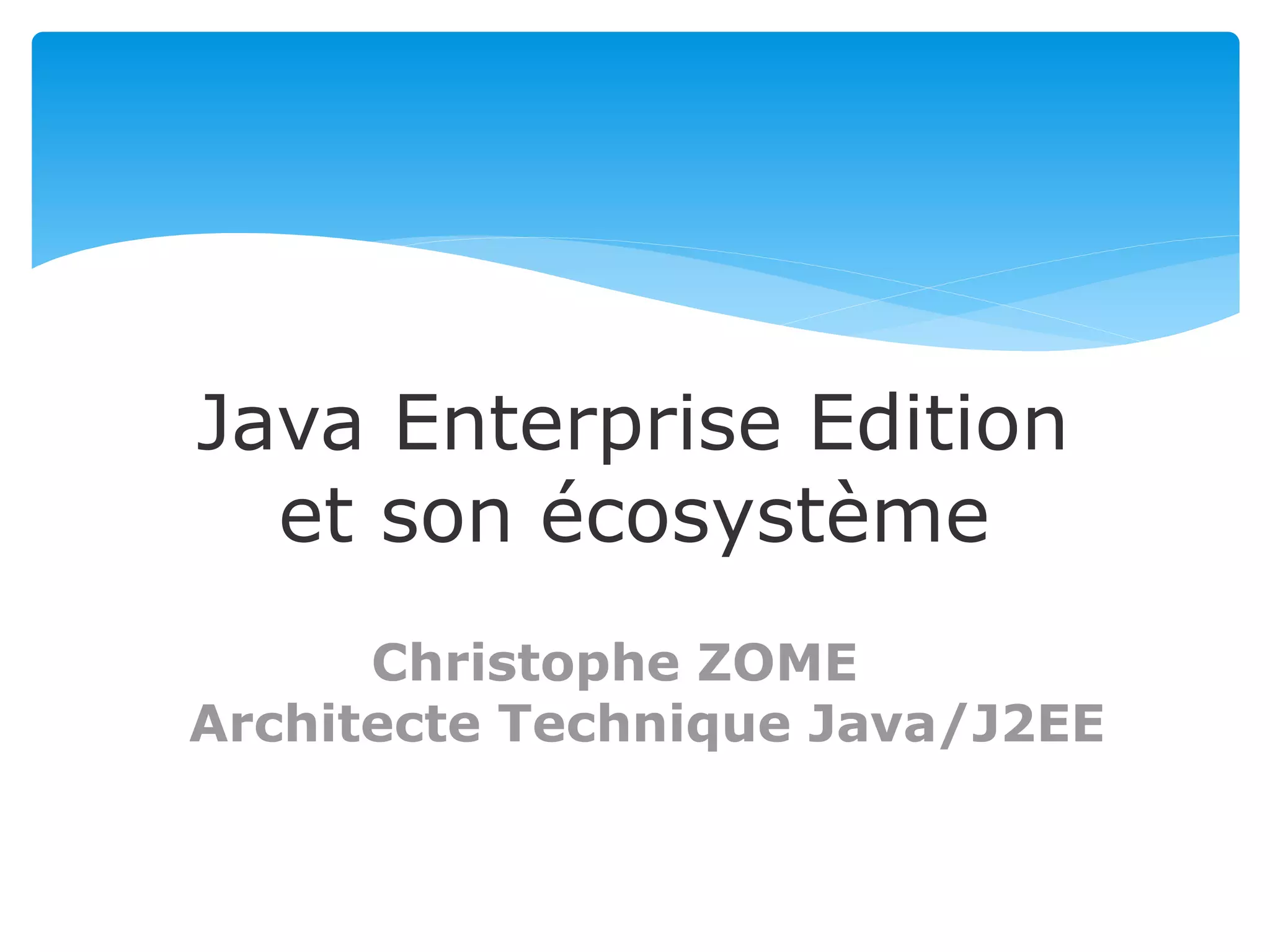 Java Enterprise Edition (JEE) est une plateforme standard pour le développement d'applications d'entreprise, facilitant la création d'applications distribuées grâce à des API et des spécifications. JEE repose sur un ensemble de services techniques essentiels, supportés par des serveurs d'applications, et permet aux développeurs d'utiliser divers frameworks et outils pour simplifier le processus de développement. Le document discute des principales technologies, frameworks, et outils associés à JEE, tout en soulignant la richesse et la diversité de l'écosystème Java.