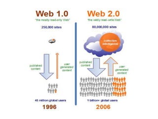 Le document présente un projet pédagogique centré sur l'utilisation des outils Web 2.0 pour favoriser un apprentissage interactif et collaboratif. Il explore les avantages du Web 2.0 en éducation, tels que l'individualisation de l'apprentissage et l'engagement des apprenants, tout en soulignant certains outils pratiques disponibles. Enfin, il met l'accent sur la nécessité de redéfinir la place de l'étudiant dans son processus d'apprentissage et évoque le potentiel futur du Web 3.0.