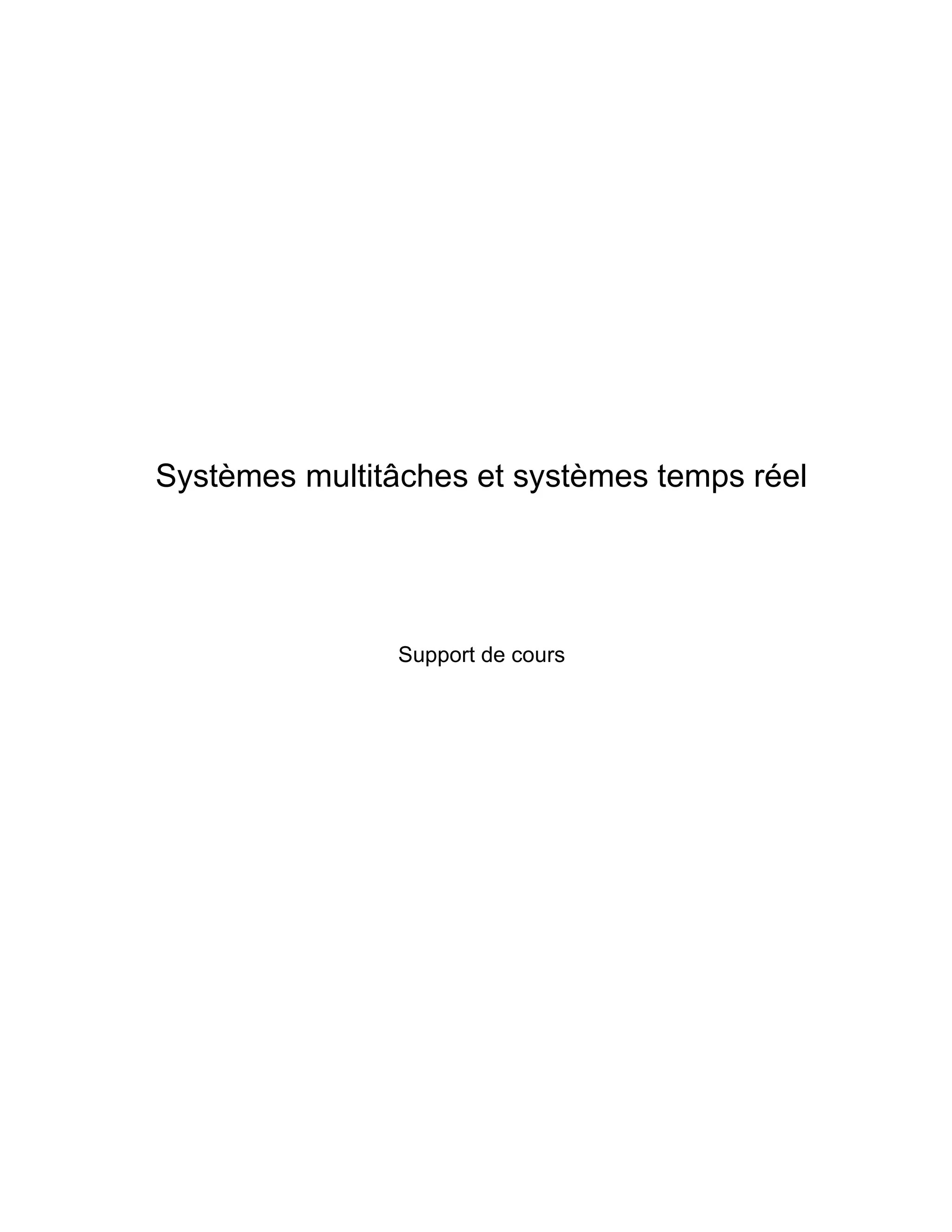 Le document traite des systèmes multitâches et des systèmes temps réel, en abordant des concepts fondamentaux tels que les définitions, les algorithmes adaptés aux contraintes de temps et les politiques d'ordonnancement. Il examine également les tâches, leurs états, et les mécanismes de synchronisation, tout en fournissant des exemples pratiques d'implémentation. Enfin, il met en lumière les défis rencontrés lors de l'accès concurrent aux données et des solutions envisagées.