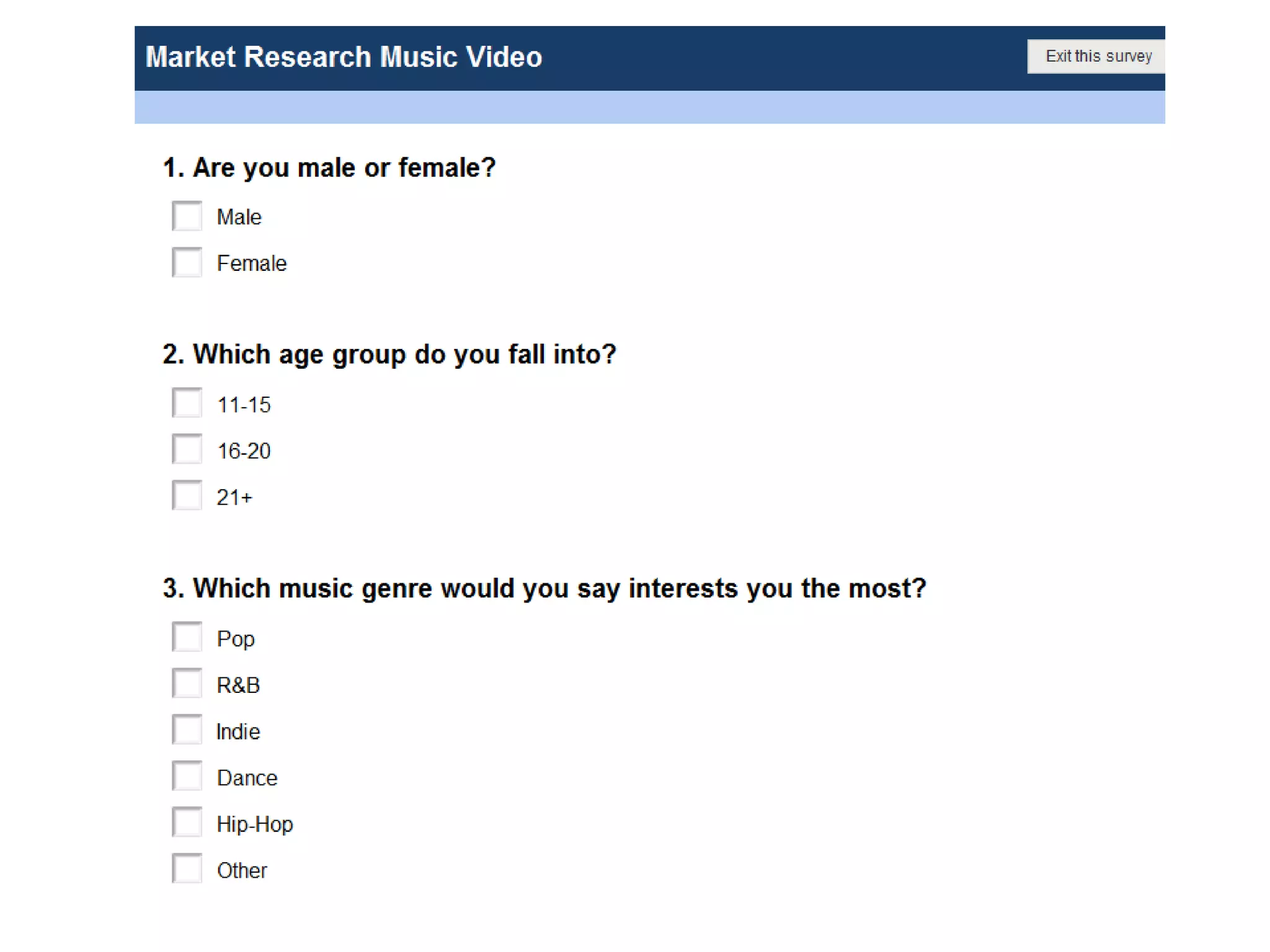 Music Video Questionnaire