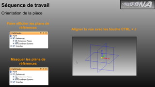 Ce document fournit une série d'instructions détaillées pour utiliser le logiciel Solid Edge avec la technologie synchrone, incluant des étapes pour créer et positionner des profils, définir des perçages, et gérer des relations géométriques 3D. Il aborde également l'activation d'outils de visualisation et des techniques pour travailler avec des esquisses et des régions dans un modèle 3D. Enfin, des conseils sur l'utilisation de l'outil de sélection et les règles dynamiques pour maintenir l'intégrité du modèle sont présentés.