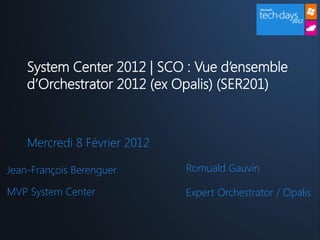Le document présente un aperçu d'Orchestrator 2012, anciennement Opalis, comme une solution d'automatisation des processus IT. Il met en avant la standardisation, la réduction des erreurs et l'optimisation des tâches répétitives comme principaux objectifs, illustrés par des retours d'expérience concrets. En intégrant divers outils de Microsoft et tiers, Orchestrator 2012 promet des gains significatifs en termes de productivité et de qualité des services IT.