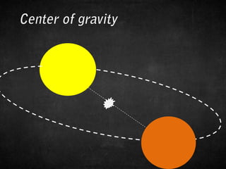 #5 When we think about the relationship between the Earth and the Sun, this is often the model we go to when we think about gravitationally bound systems. A very small something, like the Earth here on the right, the peppercorn at the end of the courtyard, circling around something very massive, the Sun. But there are also systems where the objects are about the same size.