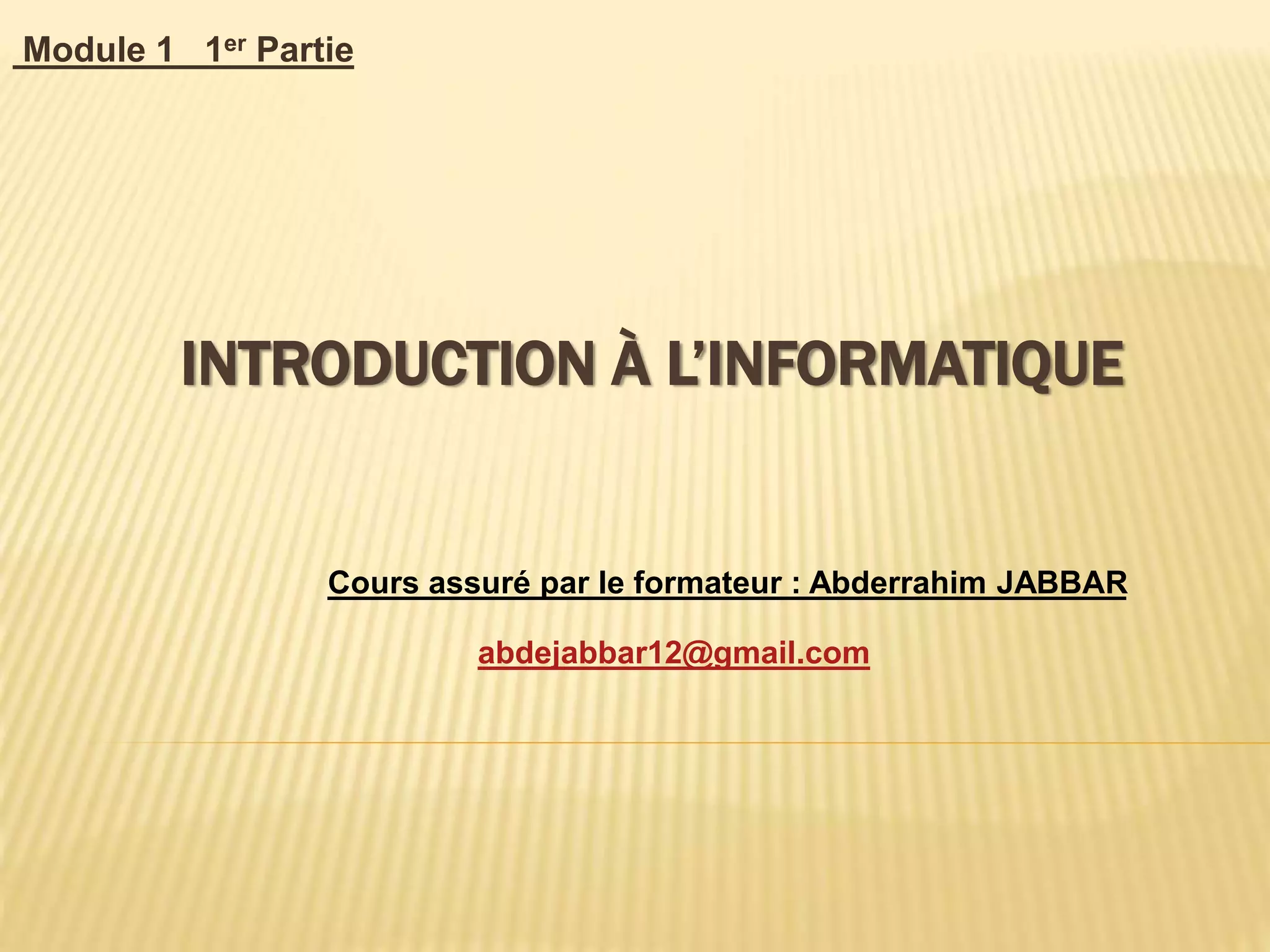 Le document présente un module d'introduction à l'informatique, axé sur les systèmes d'exploitation Windows XP et 7. Les participants apprendront les définitions, types, historiques, et différences entre ces systèmes, ainsi que des manipulations de base et des nouveautés, comme le contrôle parental de Windows 7. Le module se termine par une invitation à aborder le prochain cours sur Microsoft Office Word.