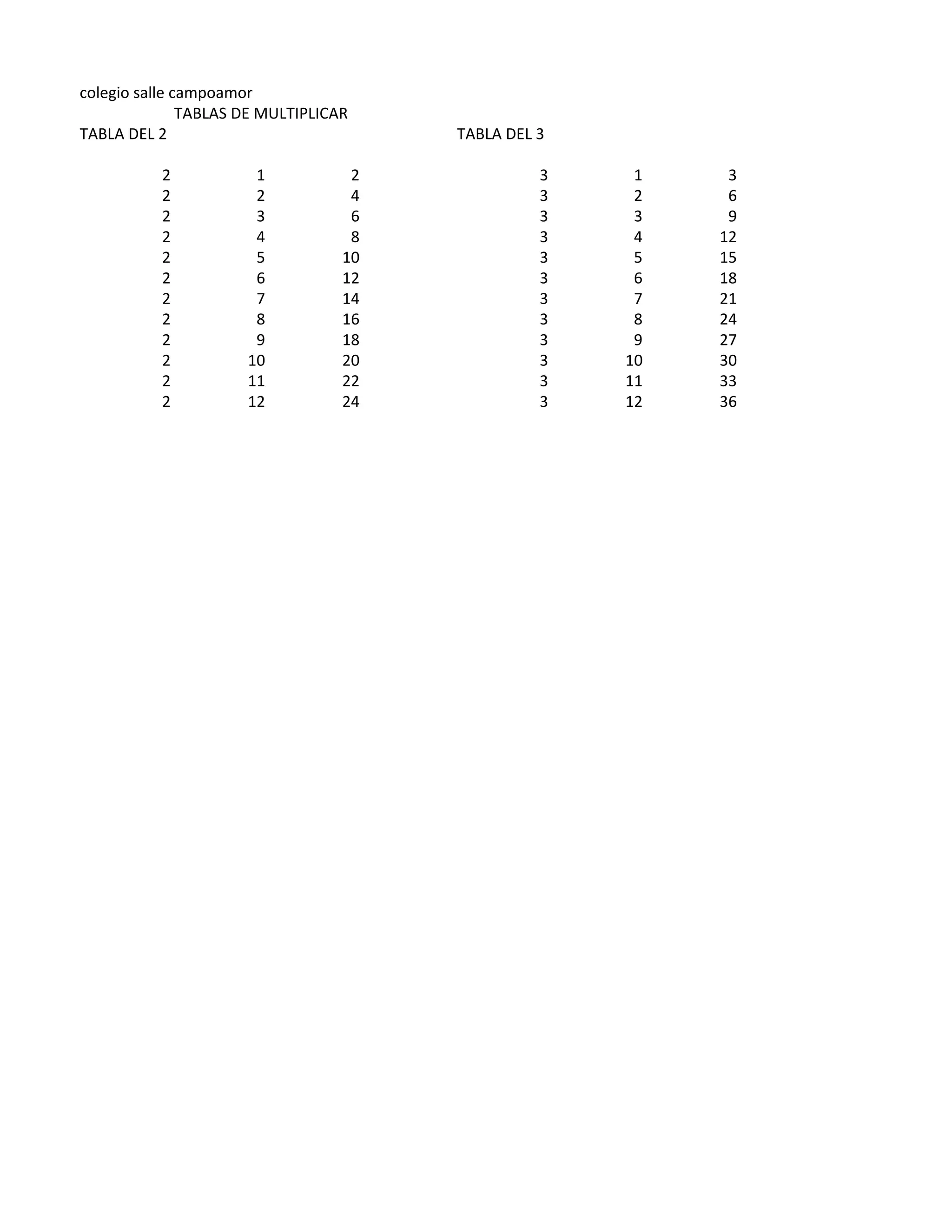 Le document présente des tables de multiplication, spécifiquement pour les nombres 2, 3, et 4. Chaque table lister les produits des multiplicateurs respectifs, allant de 1 à 12. C'est un outil éducatif pour aider à l'apprentissage des multiplications.