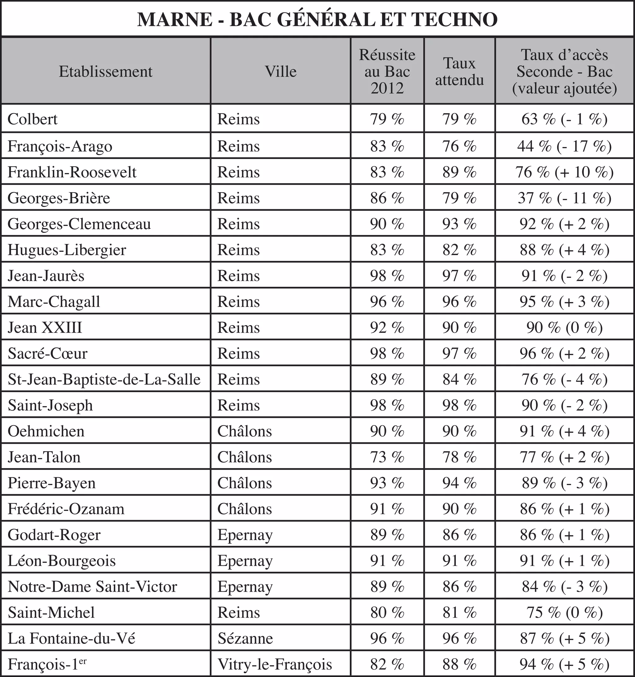 Tableau bac general et techno Marne