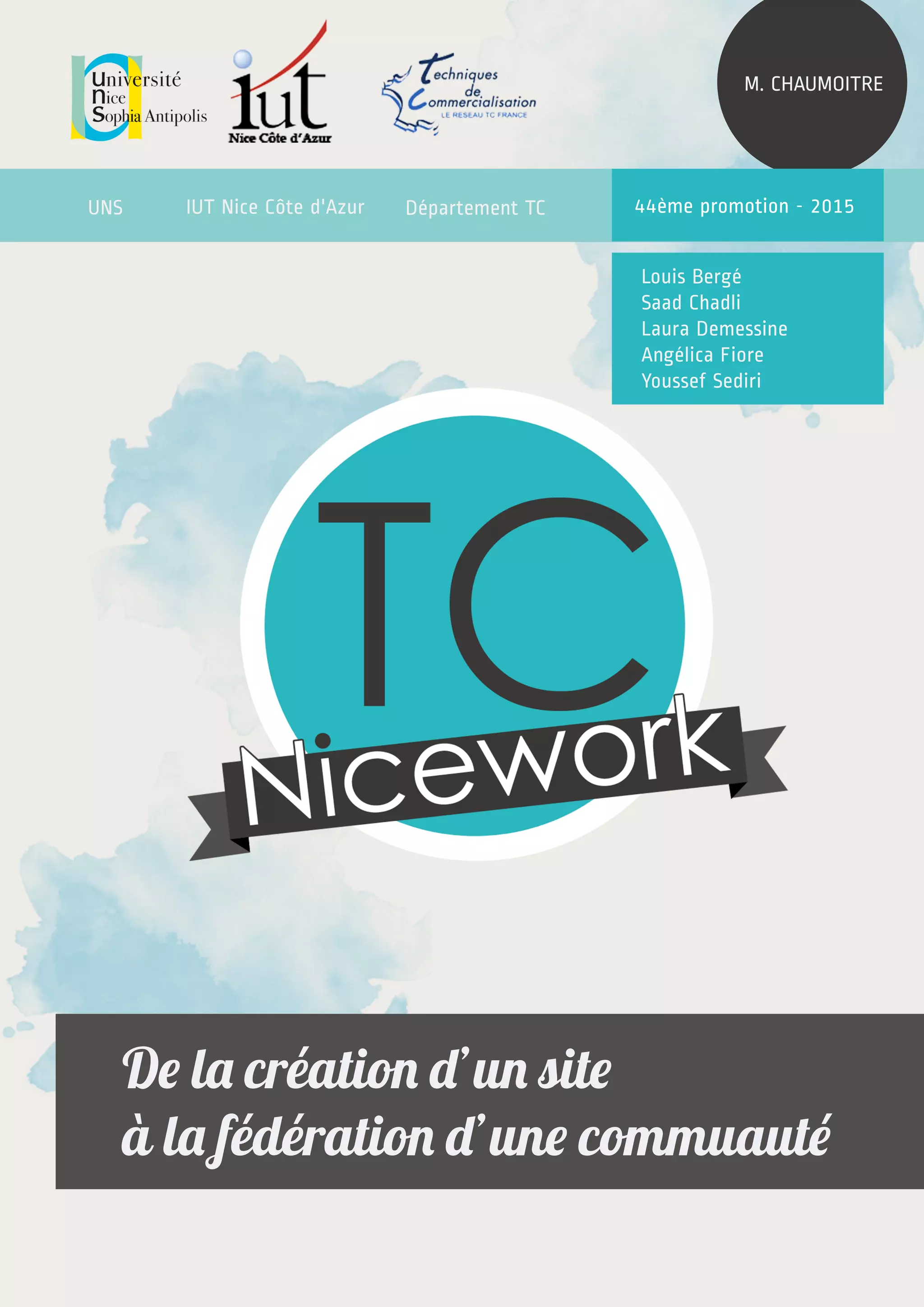 Le document décrit la création et l'organisation d'un site internet dédié aux étudiants de l'IUT en Techniques de Commercialisation, réalisé dans le cadre d'un projet tuteuré. Les auteurs remercient leurs encadrants et détaillent les étapes de développement du site, y compris la répartition des tâches et le choix des contenus. L'objectif principal est de fournir une plateforme informative, pratique et accessible, favorisant la communication entre les étudiants.