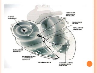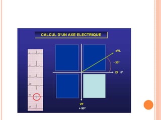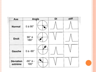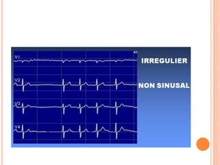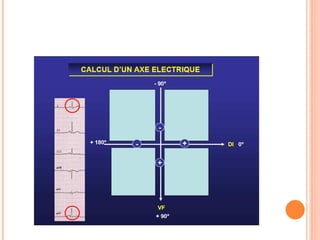 L'électrocardiogramme (ECG) est un enregistrement de l'activité électrique du cœur, réalisé de manière non invasive grâce à des électrodes placées sur la peau. Il permet de visualiser les variations de potentiel entre différentes dérivations, offrant des informations sur la dépolarisation et la repolarisation cardiaque, ainsi que l'interprétation de divers rythmes et anomalies. La compréhension de l'ECG implique la connaissance des dérivations, des caractéristiques des ondes et des pièges potentiels lors de l'interprétation.