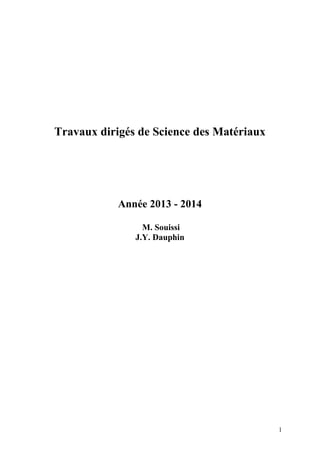 Le document aborde divers travaux dirigés en science des matériaux concernant des courbes de traction d'acier inoxydable, les contraintes thermiques de dilatation, ainsi que des études sur des diagrammes de phases du cuivre-antimoine et du fer-carbone. Il contient des questions et des calculs relatifs aux propriétés mécaniques et thermiques de différents matériaux, ainsi qu'à la structure cristallographique du fer. Des traitements thermiques et des désignations normalisées des alliages ferreux sont également discutés.
