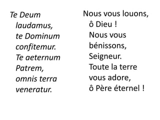 Le document est une prière de louange et d'adoration à Dieu, exaltant sa majesté éternelle et ses œuvres. Elle mentionne la vénération des anges, des apôtres et des martyrs, ainsi que la supplication pour la rédemption et la protection des fidèles. La prière se conclut par une affirmation de foi et d'espérance en la miséricorde divine.