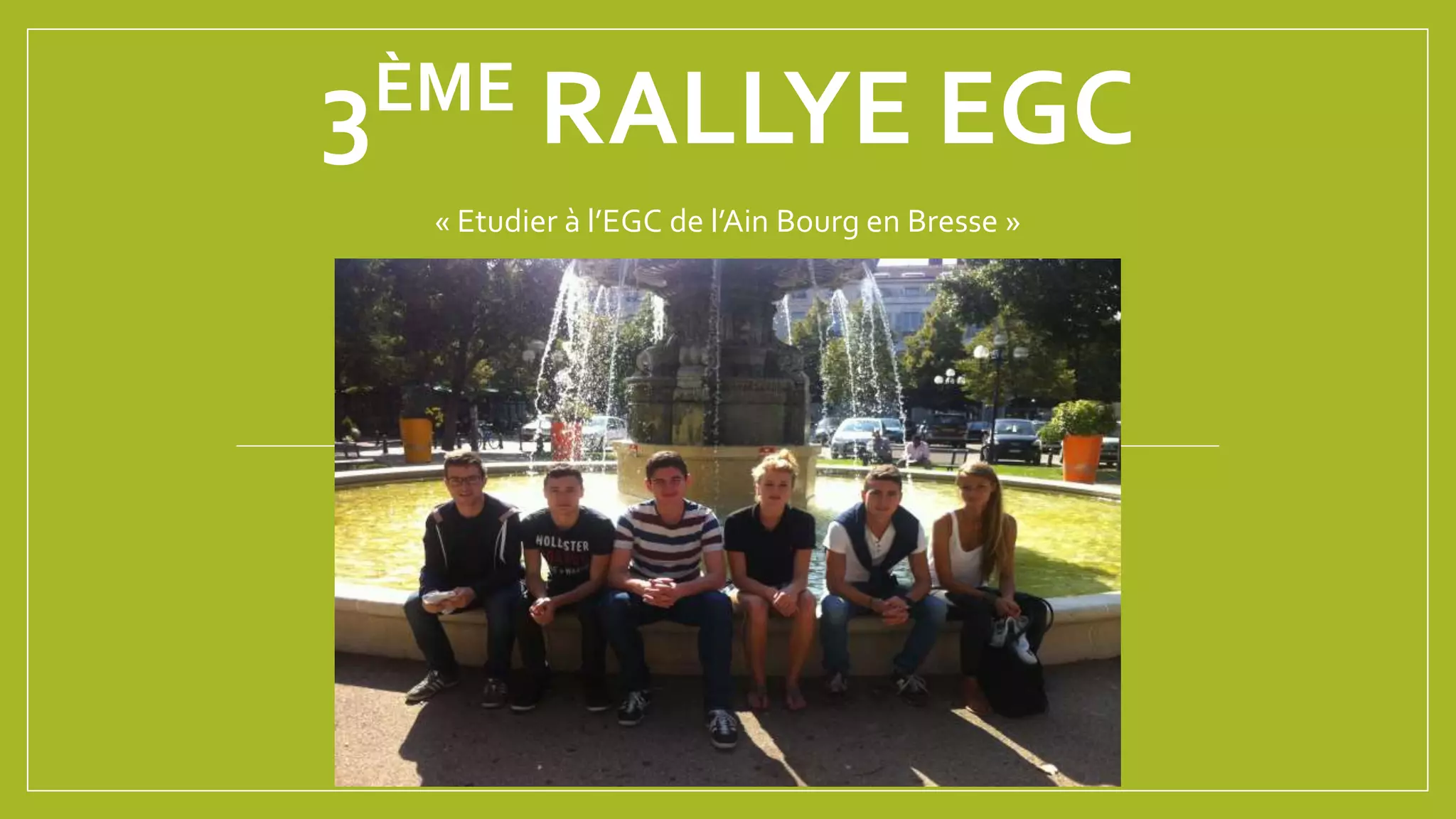Le document présente le 3ème rallye EGC mettant en avant les richesses culturelles et économiques de Bourg-en-Bresse, comprenant l'agriculture, notamment l'AOC volaille de Bresse, et l'industrie, avec des sites Renaut/Volvo. Il mentionne également des spécialités culinaires locales ainsi que des activités sportives disponibles pour les étudiants. Des informations pratiques sur l'assurance habitation et le coût des loyers dans la ville sont aussi incluses.
