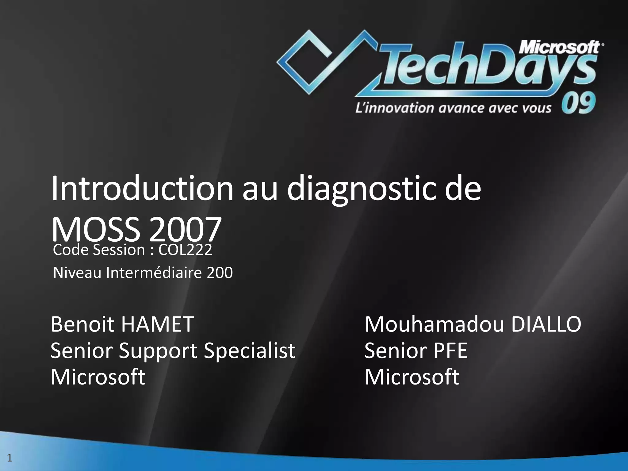 Le document présente des techniques de diagnostic pour l'environnement Microsoft Office SharePoint Server 2007, en abordant la problématique de diagnostic, les outils disponibles et des recommandations de bonnes pratiques. Il insiste sur l'importance de la documentation, de l'utilisation d'environnements dédiés pour les tests avant mise en production, et sur l'application des bonnes pratiques de Microsoft. Plusieurs outils comme le Network Monitor, Process Monitor et Fiddler sont mentionnés pour aider à l'analyse et au débogage en cas de problèmes.
