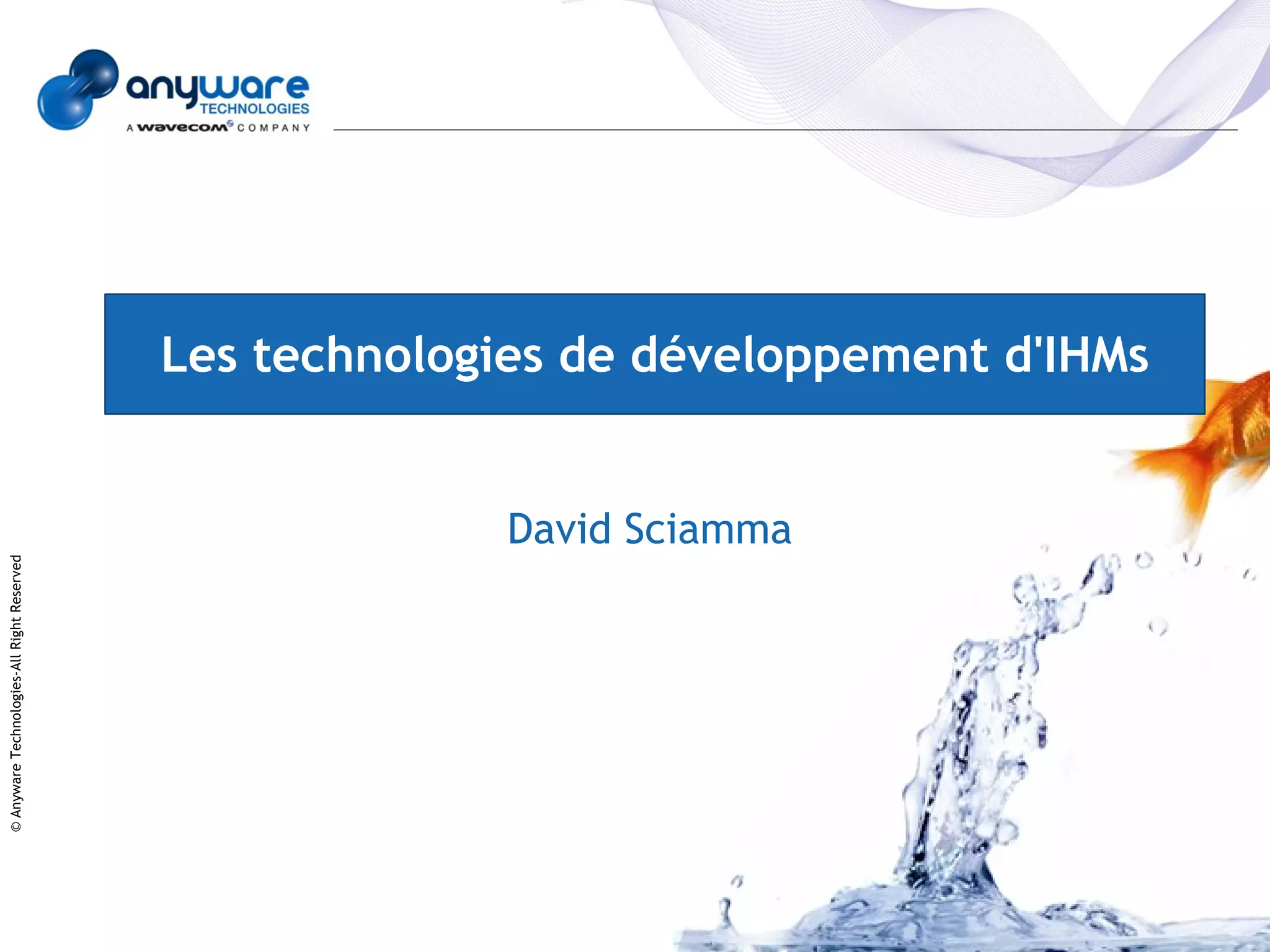 Anyware Technologies, fondée en 2000, se spécialise dans les solutions M2M et les services open source, avec une forte expertise en technologies telles qu'Eclipse RCP et AJAX. Le document couvre les principes de développement d'applications web riches, les technologies comme GWT et Flex, ainsi que des exemples de code pour démontrer leur utilisation. Enfin, il aborde divers outils et critères de choix technologiques en fonction des besoins d'application.