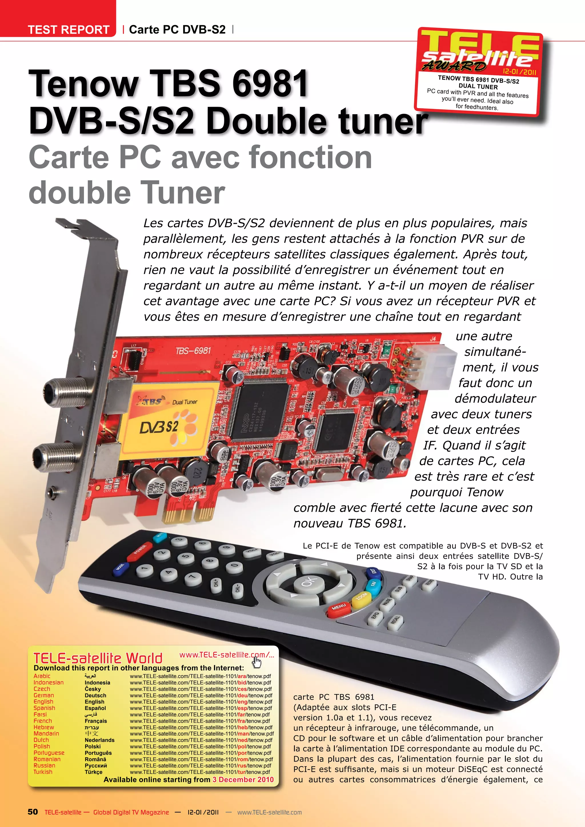 Le rapport présente la carte PC TBS 6981, un démodulateur DVB-S/S2 à double tuner permettant d'enregistrer un programme tout en en regardant un autre. Compatible avec différents systèmes d'exploitation, elle intègre une télécommande et plusieurs fonctionnalités avancées, comme la recherche de chaînes et un guide TV électronique. La carte se distingue par sa capacité à recevoir des signaux SD et HD, offrant une expérience utilisateur conviviale.