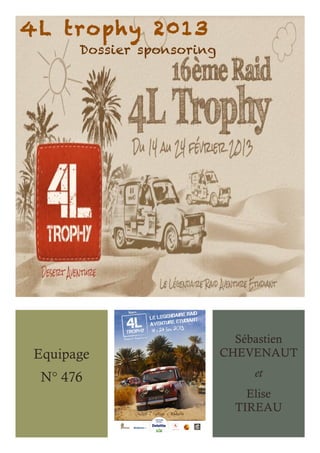Le 4L Trophy est une course humanitaire annuelle destinée aux étudiants, créée en 1996, traversant la France, l'Espagne et le Maroc pour collecter des fournitures scolaires. L'équipe n°476, composée de Sébastien Chevenaut et Elise Tireau, vise à recueillir des fonds pour leur participation et pour apporter du matériel aux enfants. Cette aventure est soutenue par une couverture médiatique significative, offrant une visibilité aux sponsors associant leur image à des initiatives humanitaires et écologiques.