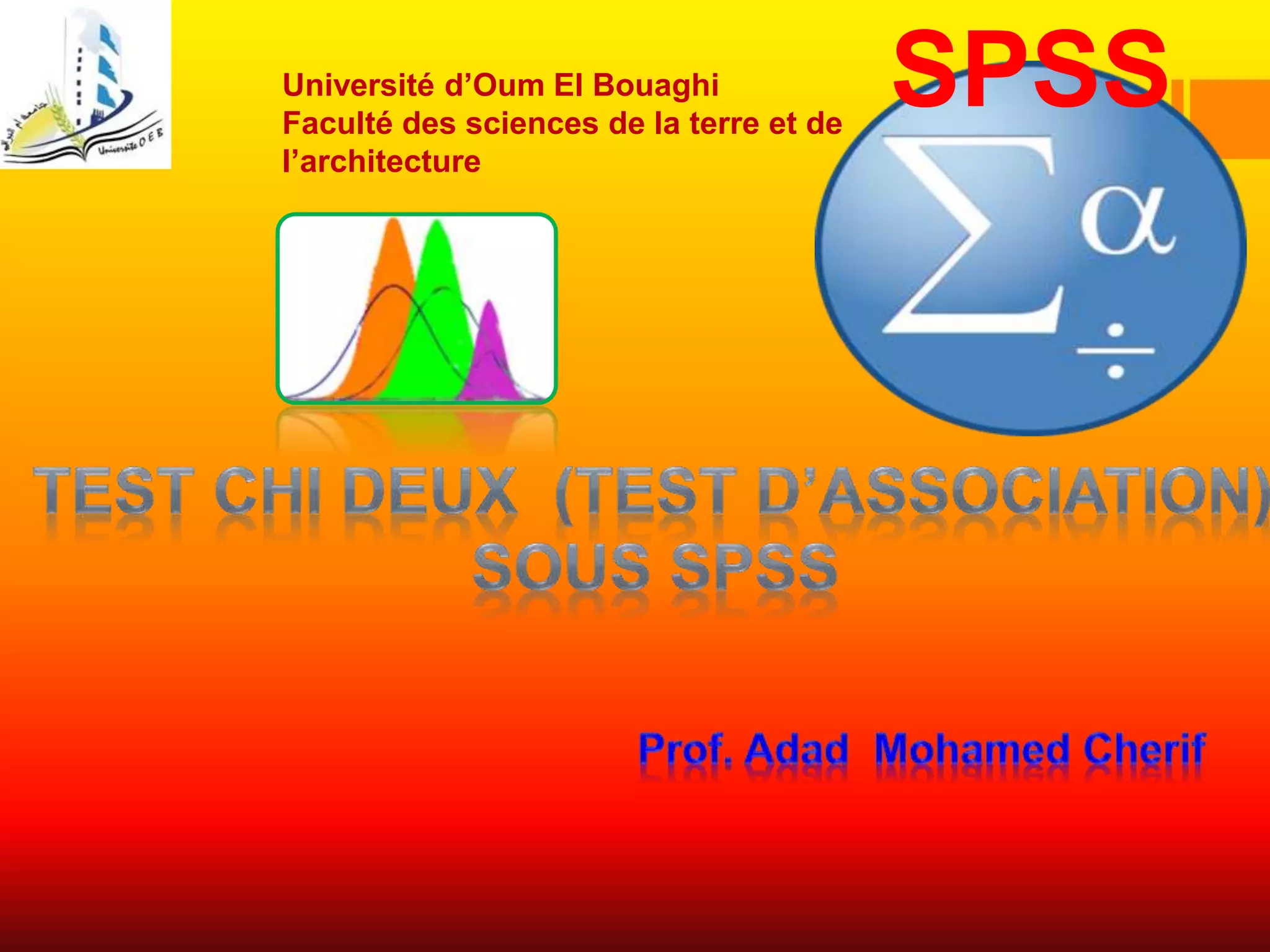 Le document traite du test Khi-deux, une analyse bi-variée utilisée pour déterminer l'association entre deux variables qualitatives nominales. Il illustre, à travers une étude sur la relation entre le sexe et les achats en Algérie, comment ce test évalue les hypothèses d'indépendance. Les résultats indiquent une association significative, avec une valeur p < 0,05, suggérant que les femmes achètent plus fréquemment que les hommes.