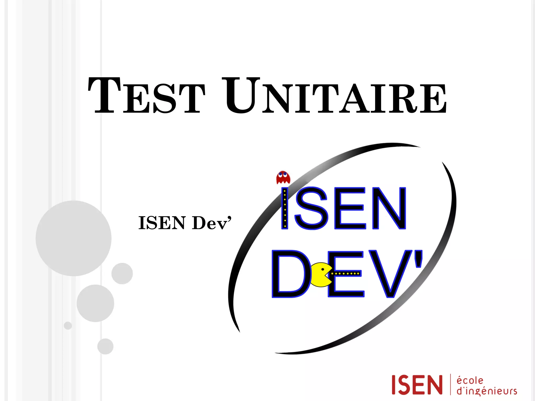 Le document présente les tests unitaires, définissant leur objectif et les règles essentielles pour leur mise en œuvre. Il aborde également l'importance des tests dans le développement piloté par les tests (TDD) et évoque des outils et conventions de nommage associés. Enfin, il souligne les avantages des tests unitaires pour la garantie de non-régression et la facilité de détection des bugs.