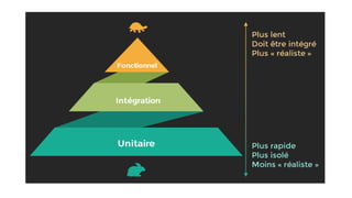 Le document traite des tests unitaires et de non-régression dans le développement logiciel, soulignant leur importance dans le cycle de vie du logiciel et les méthodologies agiles. Il explique également le développement dirigé par les tests (TDD), la structure et les conventions des tests avec JUnit 5, ainsi que divers types d'annotations pour gérer les tests, y compris les tests paramétrés et imbriqués. Enfin, le document aborde les assertions et le cycle de vie des tests, offrant un aperçu complet de l'utilisation de JUnit 5 pour les tests automatisés.