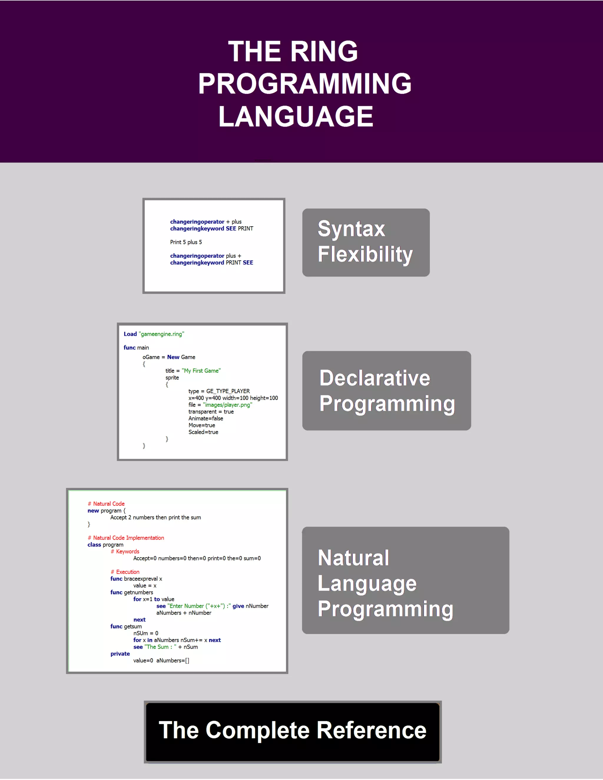 Le document présente la version 1.6 de la documentation Ring, détaillant diverses applications développées, notamment des jeux et des utilitaires. Il aborde également la conception du langage Ring, ses fonctionnalités, et liste les nouvelles fonctionnalités et changements survenus dans les versions 1.4 à 1.6. En outre, il offre une vision de l'historique, de la motivation et des caractéristiques uniques de Ring.
