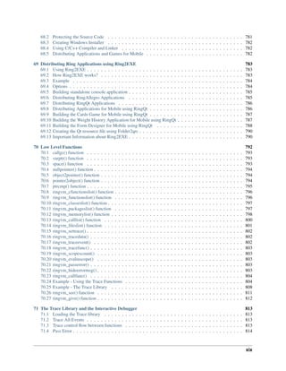Le document traite de la protection du code source et de la distribution d'applications, notamment sur mobile, en utilisant ring2exe et d'autres outils. Il explore les fonctions de bas niveau et les bibliothèques de trace pour le débogage interactif, ainsi que l'extension de la langue Ring avec C/C++. Enfin, il présente des instructions pour intégrer Ring dans des programmes en C/C++.