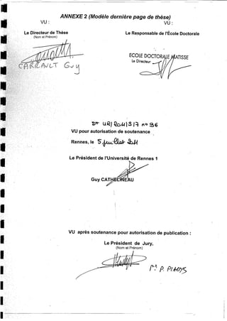 La thèse présente une recherche sur la détection multivariée des épisodes d'apnée-bradycardie chez les prématurés en utilisant des modèles semi-markoviens cachés. Réalisée par Miguel Altuve à l'université de Rennes 1 et à la Universidad Simón Bolívar, elle a été soutenue le 8 juillet 2011 devant un jury d'experts. Le document aborde des sujets allant du contexte clinique aux méthodologies de détection, en passant par une analyse approfondie des signaux ECG.