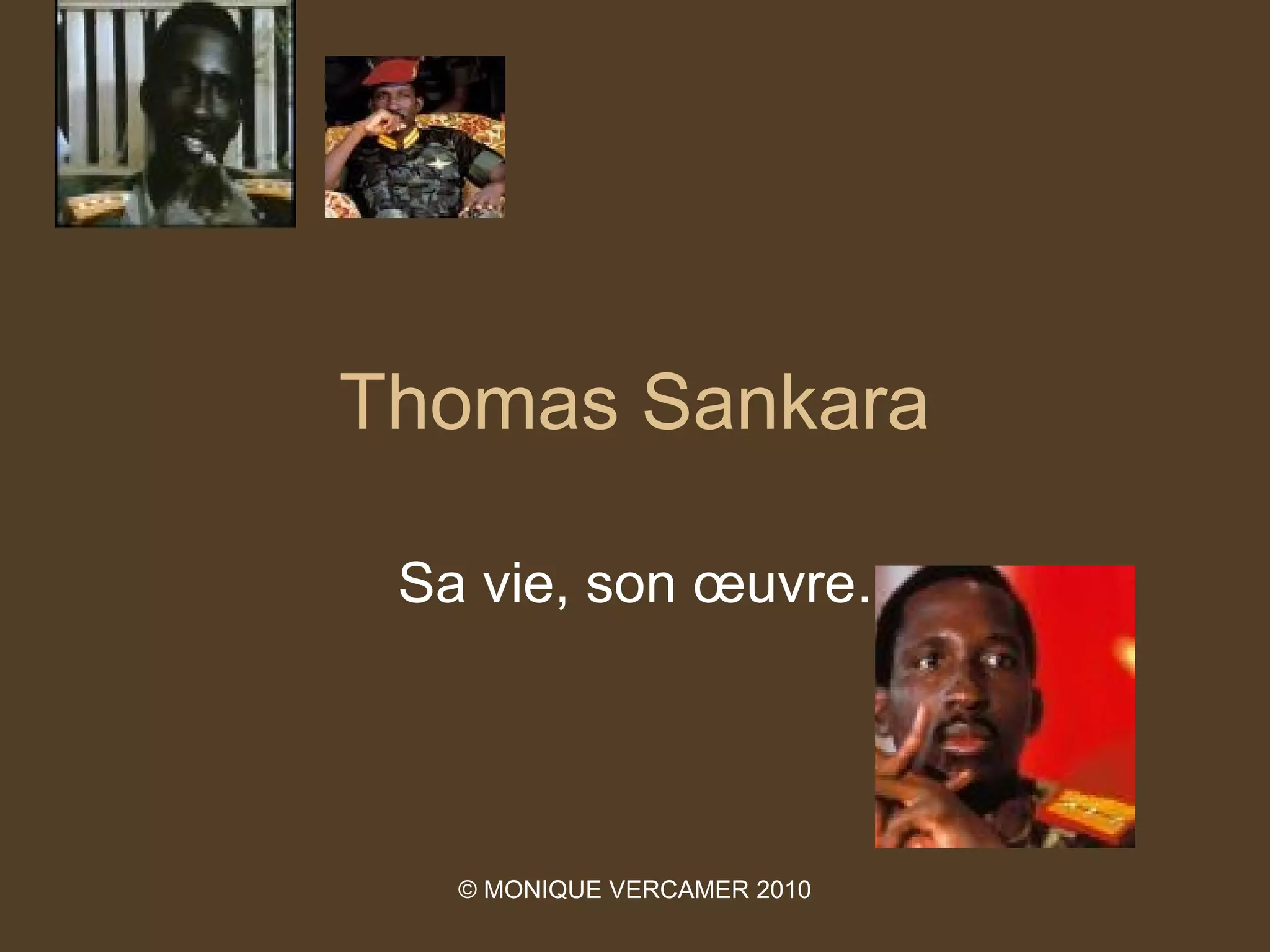 Le document retrace la vie et l'œuvre de Thomas Sankara, un leader révolutionnaire burkinabé, et décrit l'histoire politique de Burkina Faso, de la colonisation à son indépendance. Sankara, en tant que président, a promulgué des réformes visant à libérer l'Afrique de la domination extérieure et à promouvoir la dignité et l'intégrité des populations. Son assassinat en 1987 a marqué la fin d'une période d'espoir pour de nombreux Burkinabés qui le considéraient comme un symbole de progrès et d'émancipation nationale.