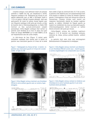 Le document rapporte deux cas de thrombose veineuse profonde des membres supérieurs chez des femmes porteuses de pacemaker, après des complications post-opératoires. Les deux patientes ont présenté des douleurs et un œdème au niveau du membre supérieur gauche, qui ont été confirmés par écho-doppler comme une thrombose brachio-axillaire gauche. L'évolution de leur état a été favorable avec un traitement anticoagulant, sans complications notables.